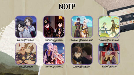 ☆OTP/NOTP:_ Hardship của mình là TarouHaruka (Donbrothers), MicchiBeroba (KR Geats), GiShi (KNY), SounTaiten (RK), ZackAerith(FF7). Mình không chấp nhận việc bạn đục hardship mình trên wall mình hay lúc đang nói chuyện._ Không thoải mái với RyotaroHana (KR Den-O), TaigaNico (KR Ex-Aid), RakiaSachika (KR Gavv)._ Mình khá dễ tính với chuyện bạn ship NOTP của mình, bạn khoe ở đâu cũng được thì tùy bạn, nhưng không phải trên wall mình hay nói chuyện với mình.